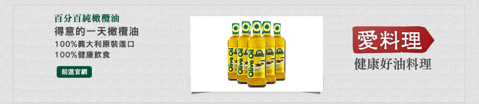 得意的一天義大利橄欖油選用義大利頂級品種橄欖,100%從義大利整瓶原裝進口。在橄欖最新鮮的時候,以手工摘下,24小時內低溫壓榨,再放到5℃的恆溫地窖中,完整保留橄欖的美味及營養精華。